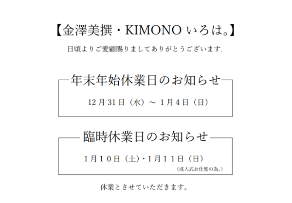 この機会に皆様により一層、金澤を楽しんで頂けると幸いでございます。